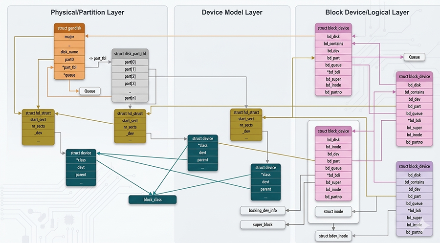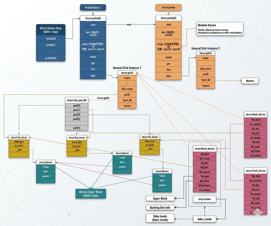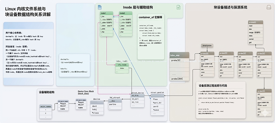 A:是的,一个块设备可以被挂载到多处,每次挂载都会创建vfsmount,但是VFS的super_block只有一个,dentry是属于文件系统的 而不是属于某个挂载点,唯一代表文件系统的是VFS的super_block,因此,dentry结构体中有到super_block的指针,但是没有到 vfsmount的指针,/mnt1/foo和/mnt2/foo是同一个文件系统下的同一个文件,他们对应的dentry也必然是相同的,理解了dentry是属于文件系统的,就很容易理解为什么struct path的成员只有vfsmount和dentry了.