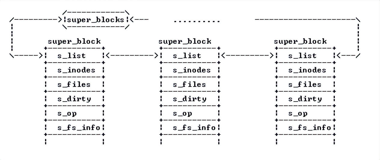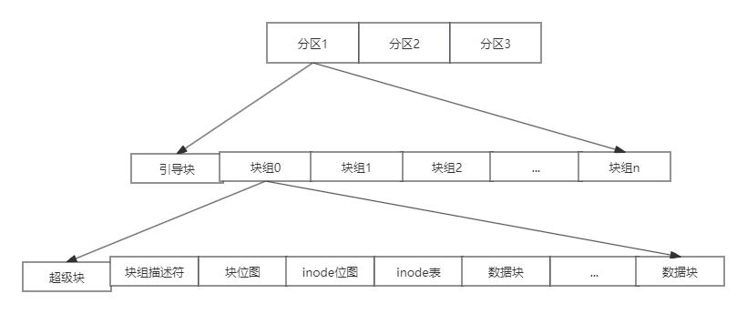 superblock:代表了文件系统的元信息,inode和data是相对于文件来说的,而superblock则是相对于文件系统来说的,通过位图存储了已使用和未使用的inode和data信息,以及block的大小和块组、文件系统类型、文件系统挂载等信息。