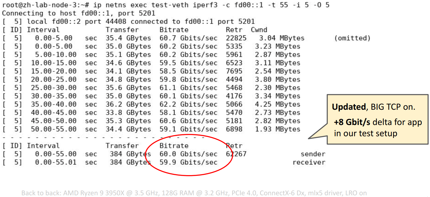 IPv6 + BIG TCP支持100Gbps/socket;提升吞吐的同时还能降低延迟; - Cilium 新开发的虚拟网络设备