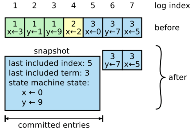 - Membership changes(节点变更): 使用一种新的联合共识 (joint consensus)方式,特点是新老配置所覆盖的两个大多数(majorities)子集 在变更期间是有重叠的,并且集群还能正常工作。